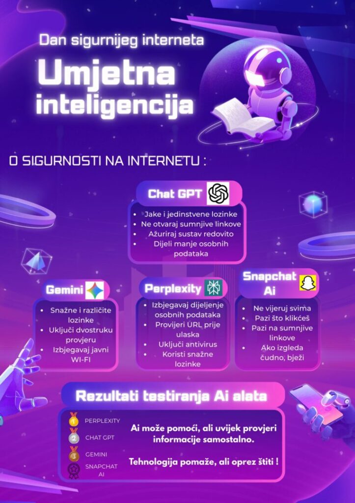 Prošli smo tjedan obilježavali Dan sigurnijeg interneta, te su tim povodom naši “AI-jevci” izradili letke s korisnim informacijama o ponašanju i sigurnosti na internetu.
